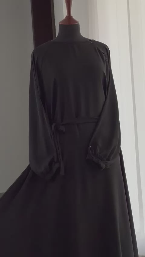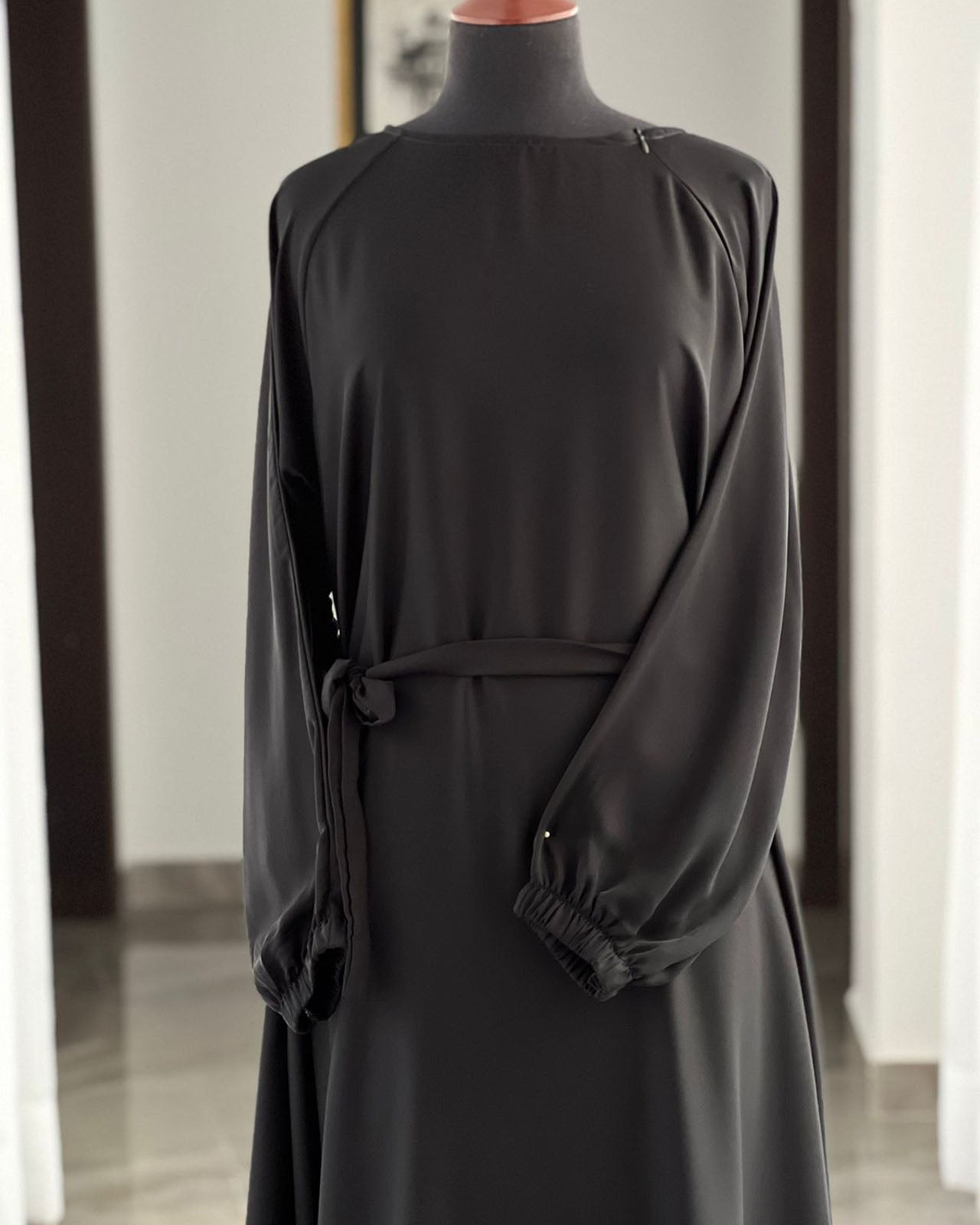 Sleek, minimal, and effortlessly chic—our Belted Classic Black Abaya is the ultimate wardrobe essential for modern modest wear. Tailored with a clean round neckline and a detachable waist belt, this abaya offers both structure and versatility. The long, flowy cut ensures maximum comfort while maintaining a graceful silhouette.